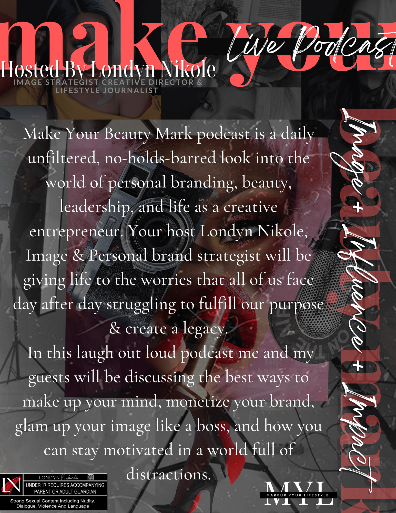 Make Your Beauty Mark podcast is a daily unfiltered, no-holds-barred look into the world of personal branding, beauty, leadership, and life as a creative entrepreneur. Your host Londyn Nikole, Image & Personal brand strategist will be giving life to the worries that all of us face day after day struggling to fulfill our purpose & create a legacy In this laugh out loud podcast me and my guests will be discussing the best ways to make up your mind, monetize your brand, glam up your image like a boss, and how you can stay motivated in a world full of distractions.