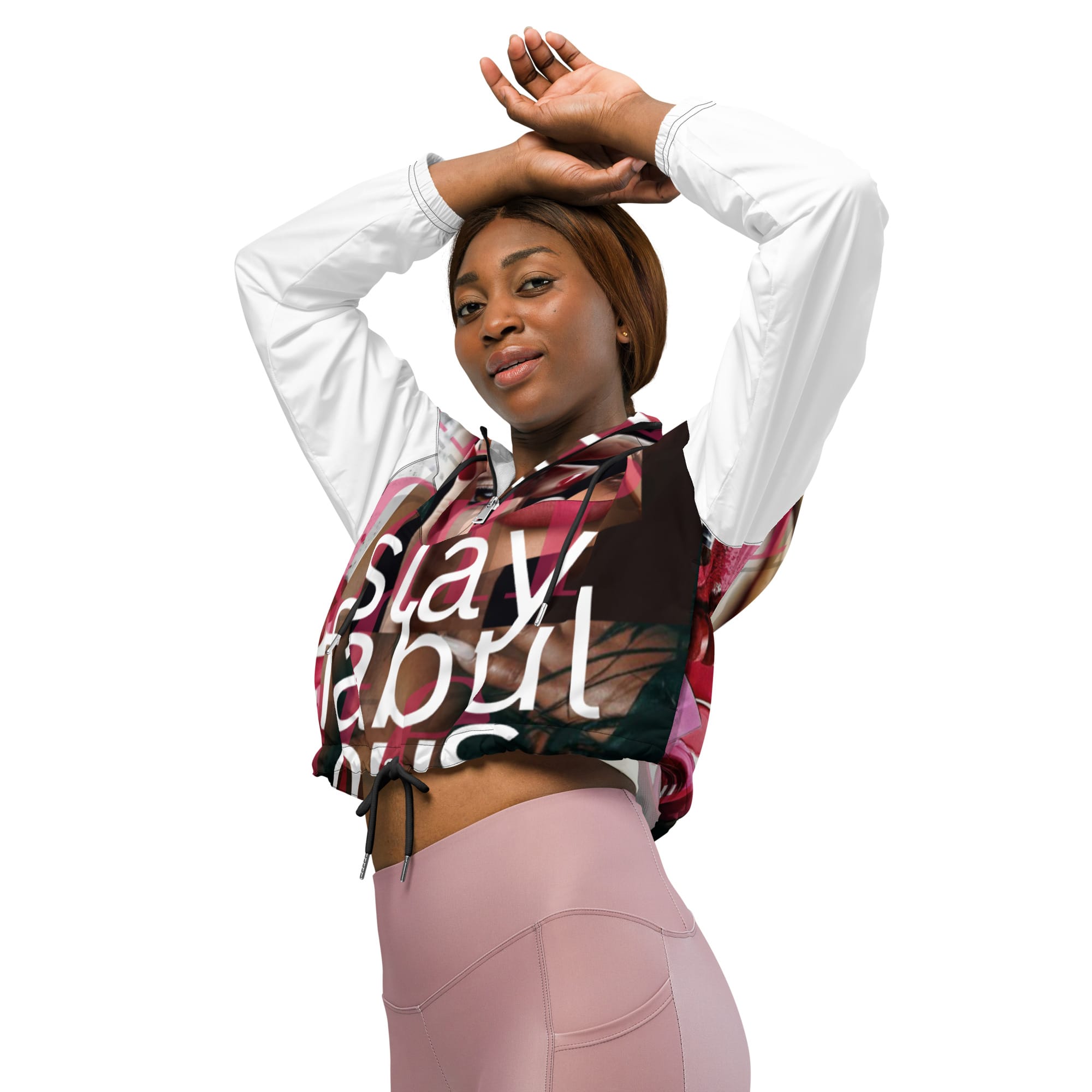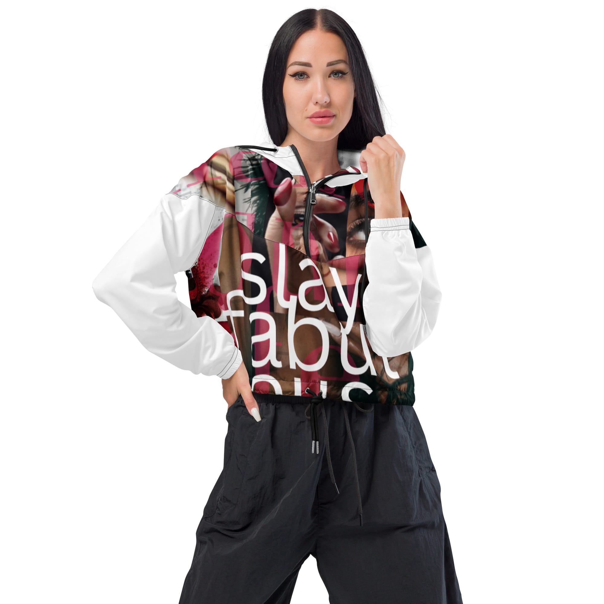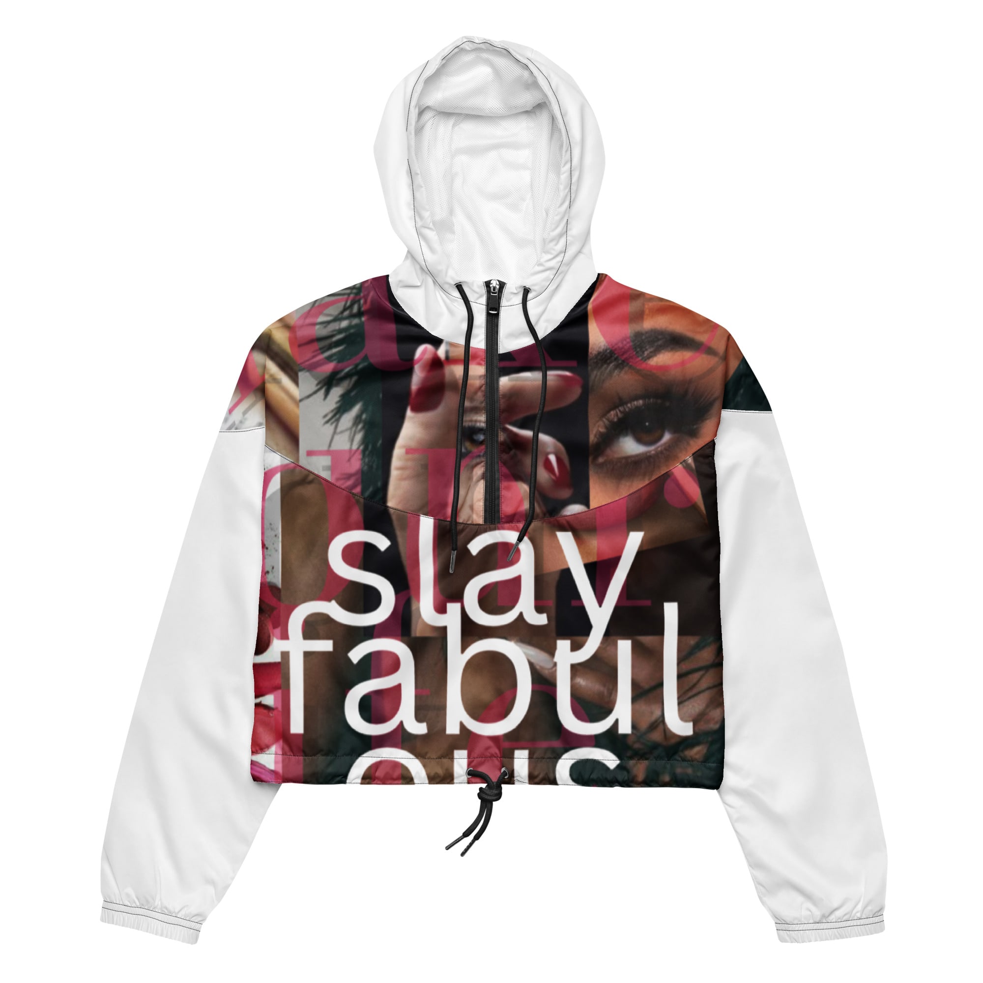 Hike in style without the rain getting in the way—this cropped windbreaker is lightweight, waterproof, and suitable for every kind of adventure. Features include side-slit pockets, breathable mesh lining, and adjustable drawcords on the hood and waist to support all your stylish outdoor looks.